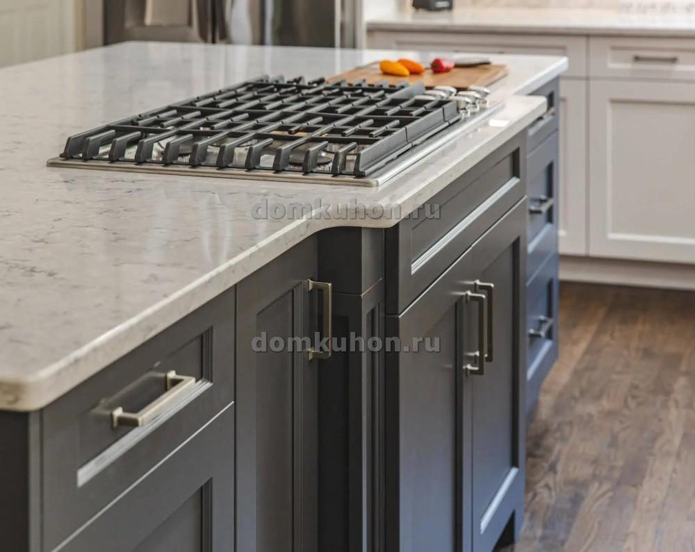 Вашему вниманию представлена кухня "Фредерика" — истинное воплощение элегантности и функциональности. Основанный на классических линиях, её дизайн воплощает в себе безвременной шик с современными акцентами. Нежно-серый цвет фасадов гармонирует с теплым оттенком деревянного пола, создавая уютную и приглашающую атмосферу. Центральный элемент — остров, с его гладкой мраморной столешницей, не только служит обеденной зоной, но и предлагает дополнительное рабочее пространство и хранение. Освещение в виде изящных подвесных светильников добавляет кухне света и изысканности. Эта кухня — идеальное решение для тех, кто ценит стиль, комфорт и качество. С кухней "Фредерика" каждый прием пищи превратится в особенное событие, а готовка станет настоящим удовольствием.