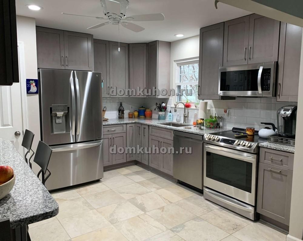 Представляем вам кухню "Миранда" — идеальное сочетание современного дизайна и практичности. Эта угловая кухня воплощает в себе элегантность современного стиля благодаря своим гладким фасадам в утонченном сером цвете и стильным металлическим ручкам. Стильные серые шкафы дополнены сверкающими нержавеющими бытовыми приборами и акцентированы классическим белым кафелем, создавая чистый и свежий вид. Гранитная столешница с тонким узором добавляет нотку изысканности, а оптимально распределенное освещение подчеркивает лаконичный дизайн. Выберите кухню "Миранда" для того, чтобы превратить приготовление пищи в истинное удовольствие и создать центральное место для сбора всей семьи.